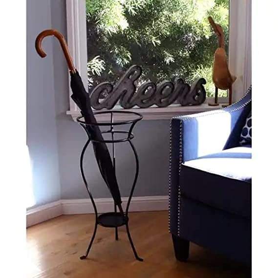 Durable Black Iron Umbrella Stand Unique Lifestyle Design Metal Storage Holder & Rack