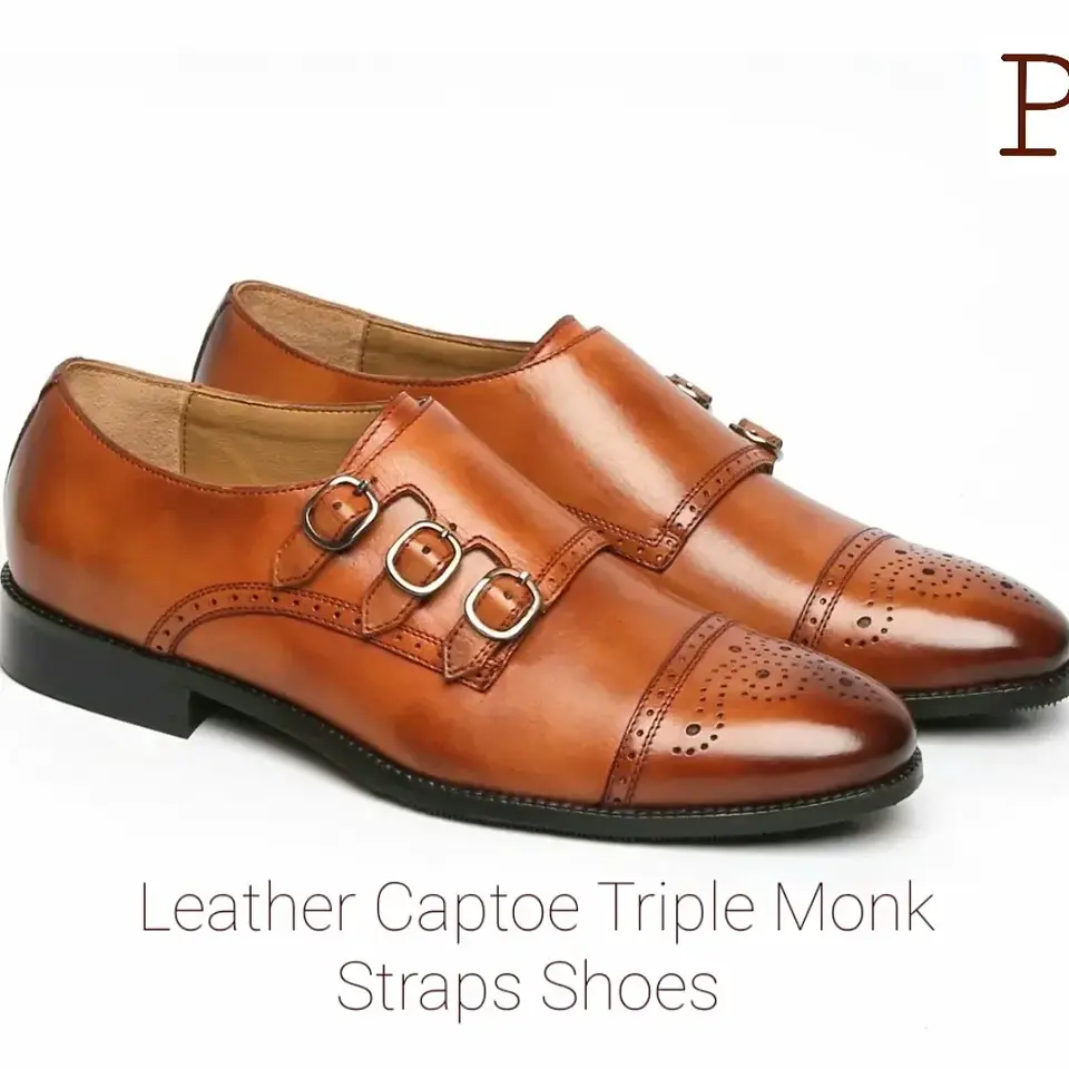 Durable Construction Leather Monk Straps Dress Shoes Luxury Design Upper Office Use Autumn Seasons Premium Shoe Stylish Men Shoe