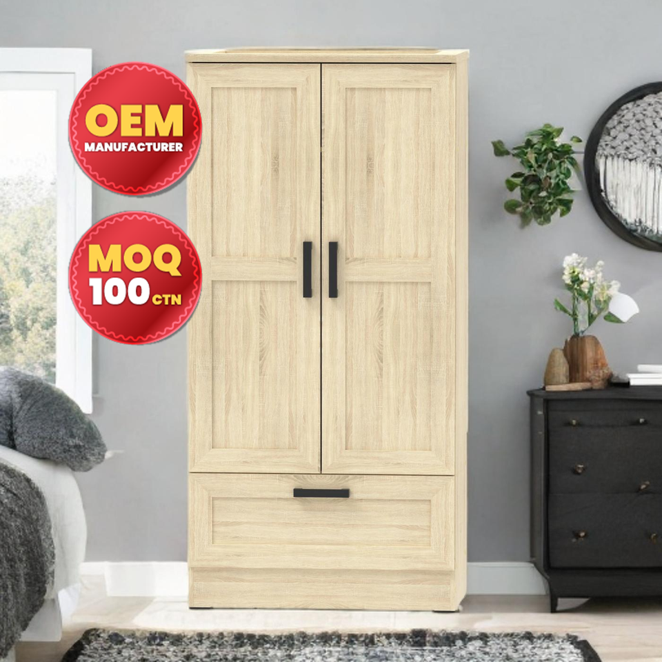 Durable Contemporary Wooden Chipboard 2-Door Wardrobe Customizable OEM Furniture for Home Workshop Bedroom Gym Use-Made Malaysia