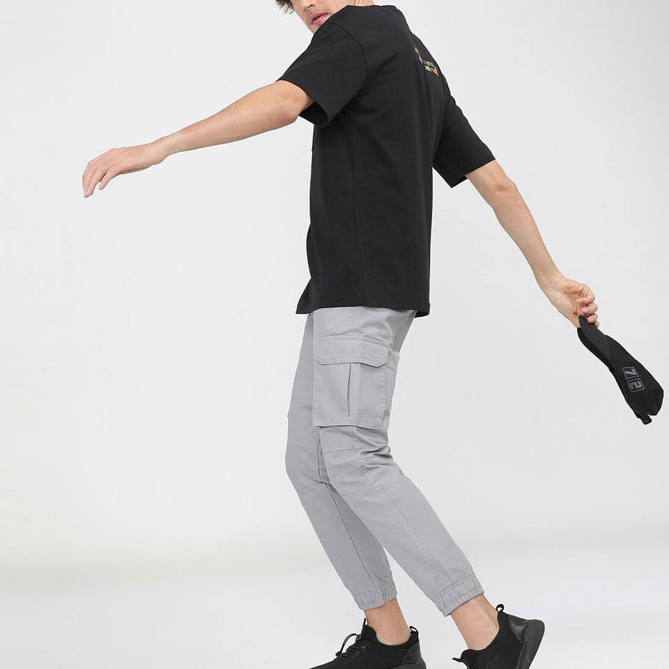 Durable Cotton Fabric Men Cargo Pants Adjustable Waist Cuffed Ankles Straight Pattern Breathable Quick Dry High Street Style