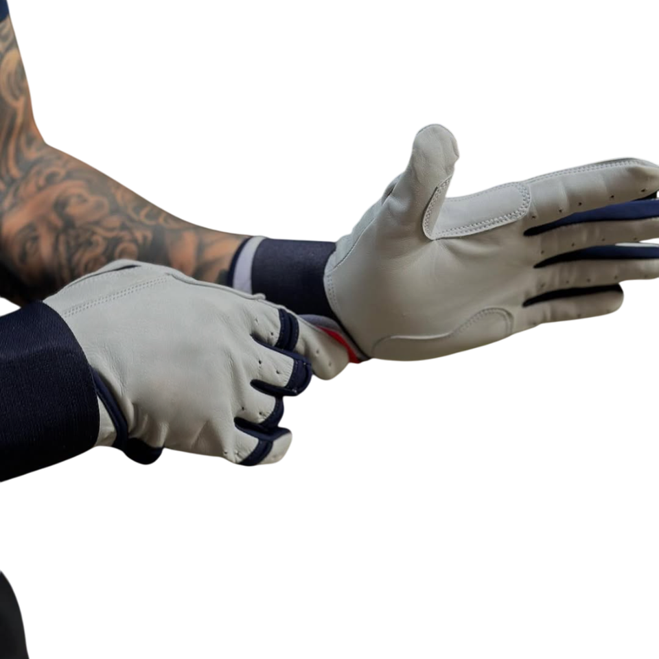Durable Cowskin Baseball Batting Gloves Ambidextrous Hook Loop Closure for Softball Baseball Players-Eco-Friendly Flexible Fit