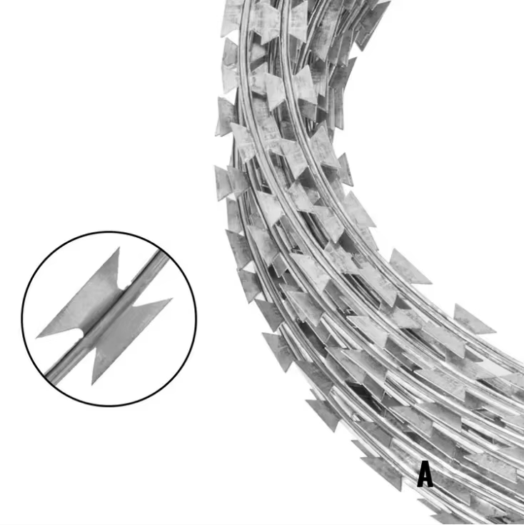 Durable Cross Hot-Dip Galvanized Razor Barbed Wire Coil Clip Gun Anti-Climbing for Airport Security and Protective Construction