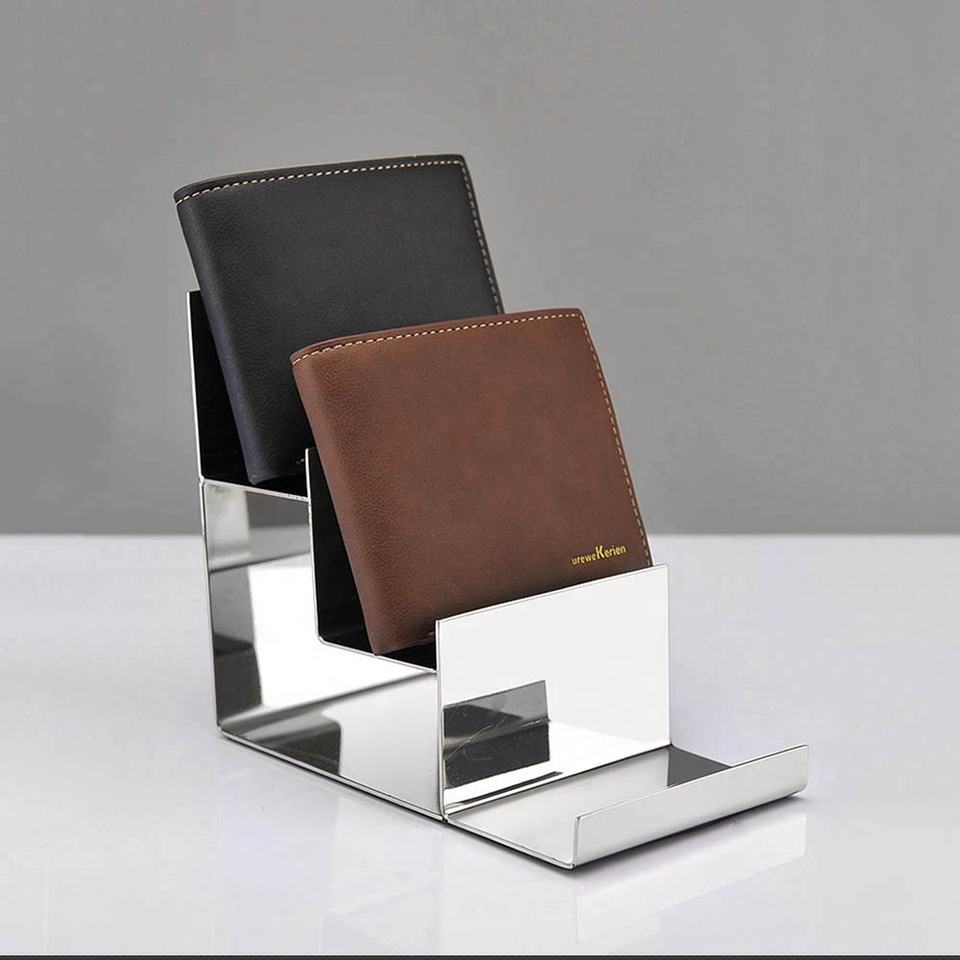 For Custom Logo Modern Stainless Steel Mirror Silver Carton Purse Stand Wallet Display Holder for Women Men