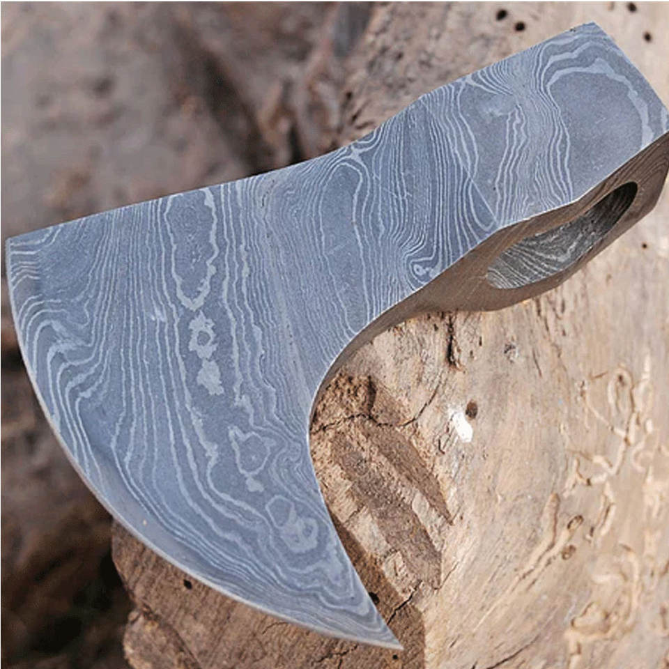 Durable Damascus Steel Axe Head Crafted for Outdoor Projects Custom Handles and Bushcraft Equipment