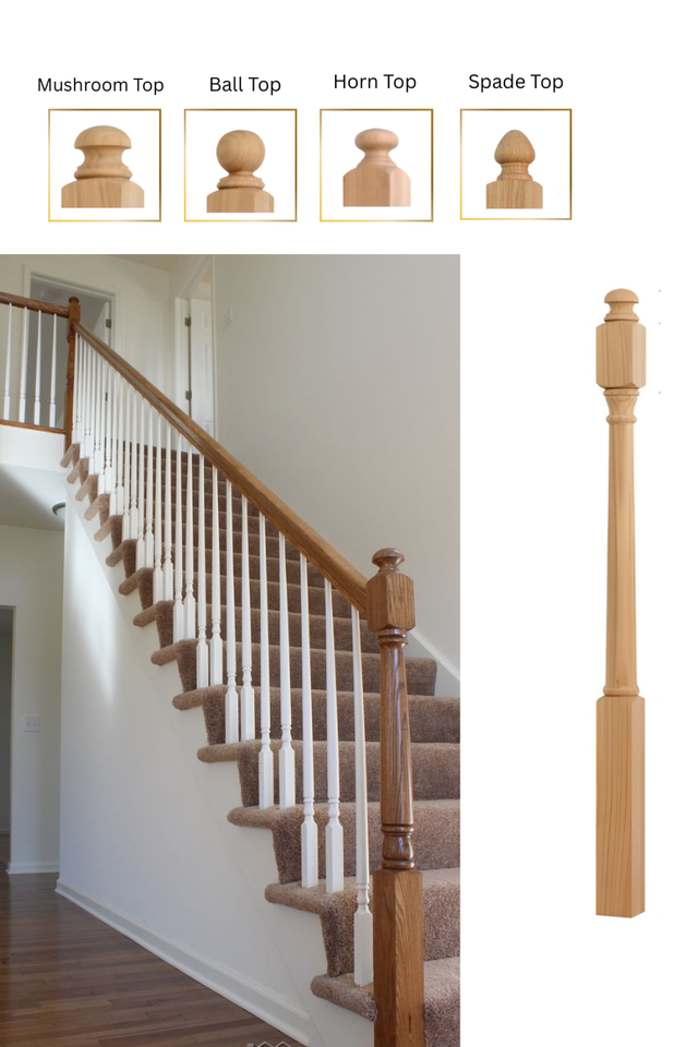 Durable Decorative White Oak Newel Posts with Mushroom Top 4040 Wooden Stair Components Stair Part From EFS Vietnam