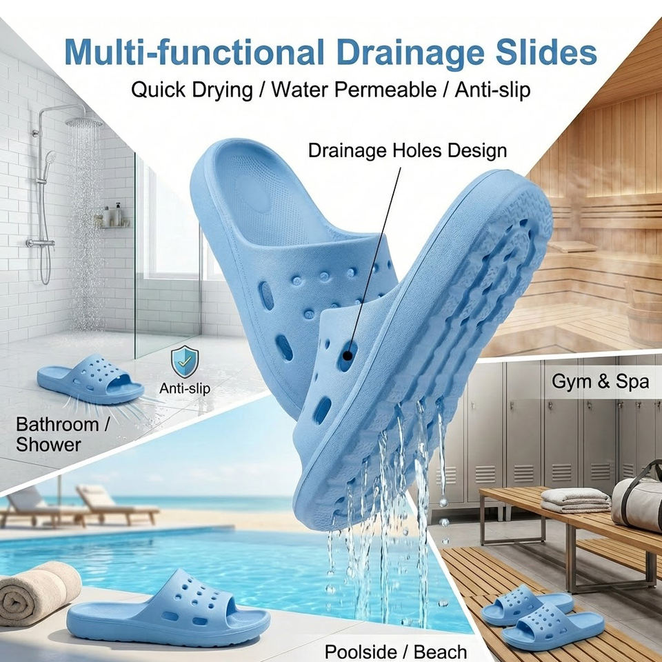 Durable EVA Indoor Hotel Slippers Non-slip Bathroom Slides Quick Dry Shower Sandals for Nursing Home & Care Center