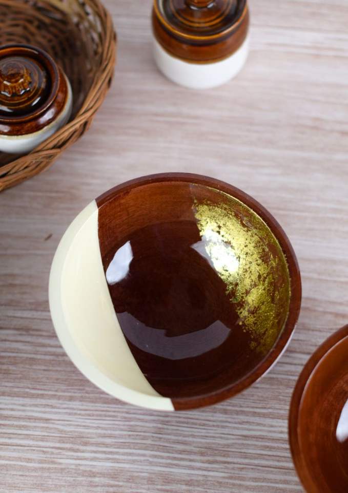 Durable Eco-Friendly Acacia Wooden Salad Bowl with Printed Enamel Finish Dishwasher Safe & Handmade