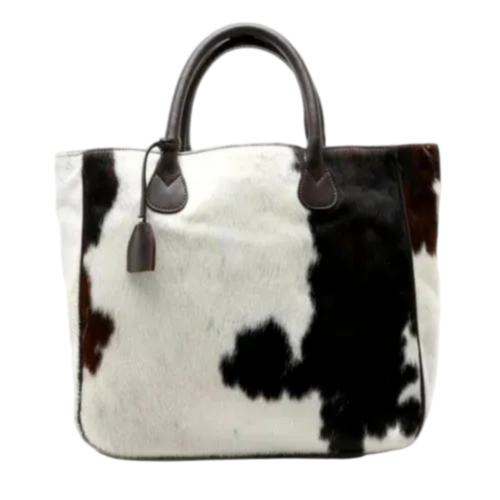 Durable Eco-Friendly Leather Tote Bag for Unisex Boho Chic Travel Ready with Hair-On Cowhide Made in India