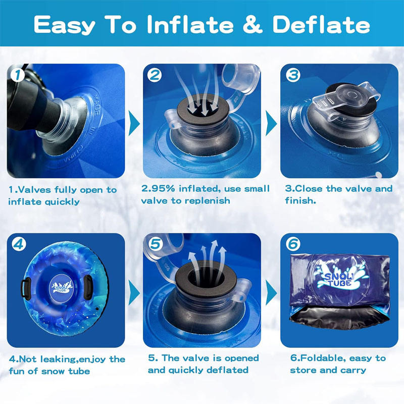 Durable Eco-friendly PVC Inflatable Snow Tube for Kids Adults Supports 220lb Quick Inflation Sturdy Handles Safety Winter