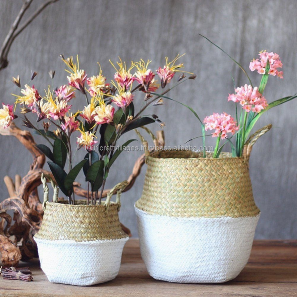 Durable Foldable Natural Seagrass Circle Modern Belly Basket Handles Trendy Decorative High Quality Eco-Friendly Storage Basket