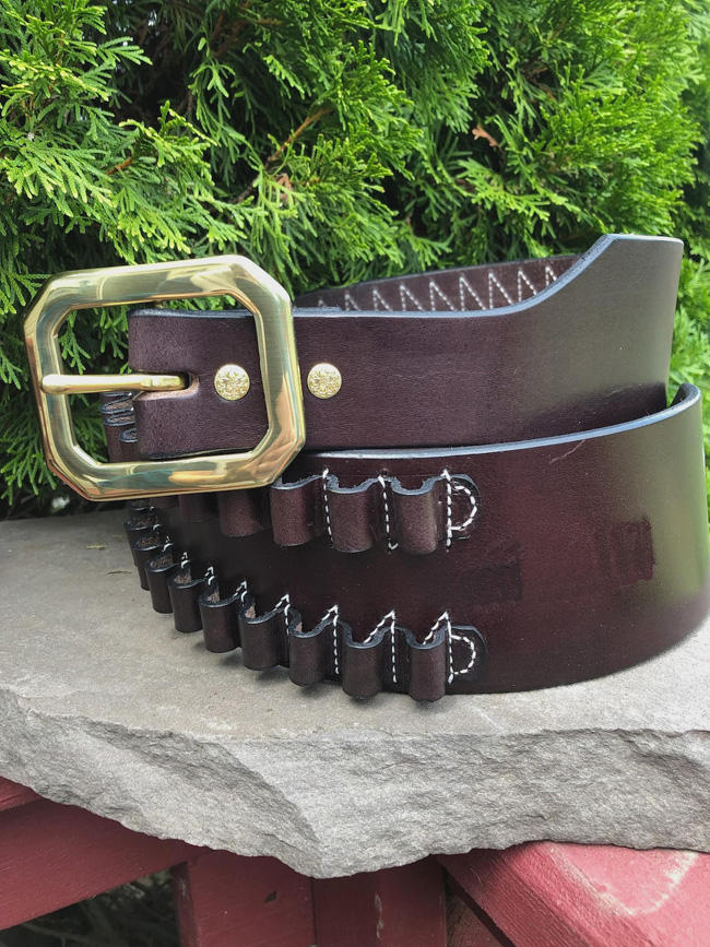 Durable Full-Grain Double Row Leather Cartridge Belts For Rugged Hunters With Brass Buckle Fitting