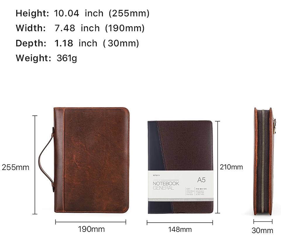 Durable Full Grain Executive Zippered Holder Leather Organizer Pocket /Portfolio A4 Files Folder for Document Leather LPF-0444
