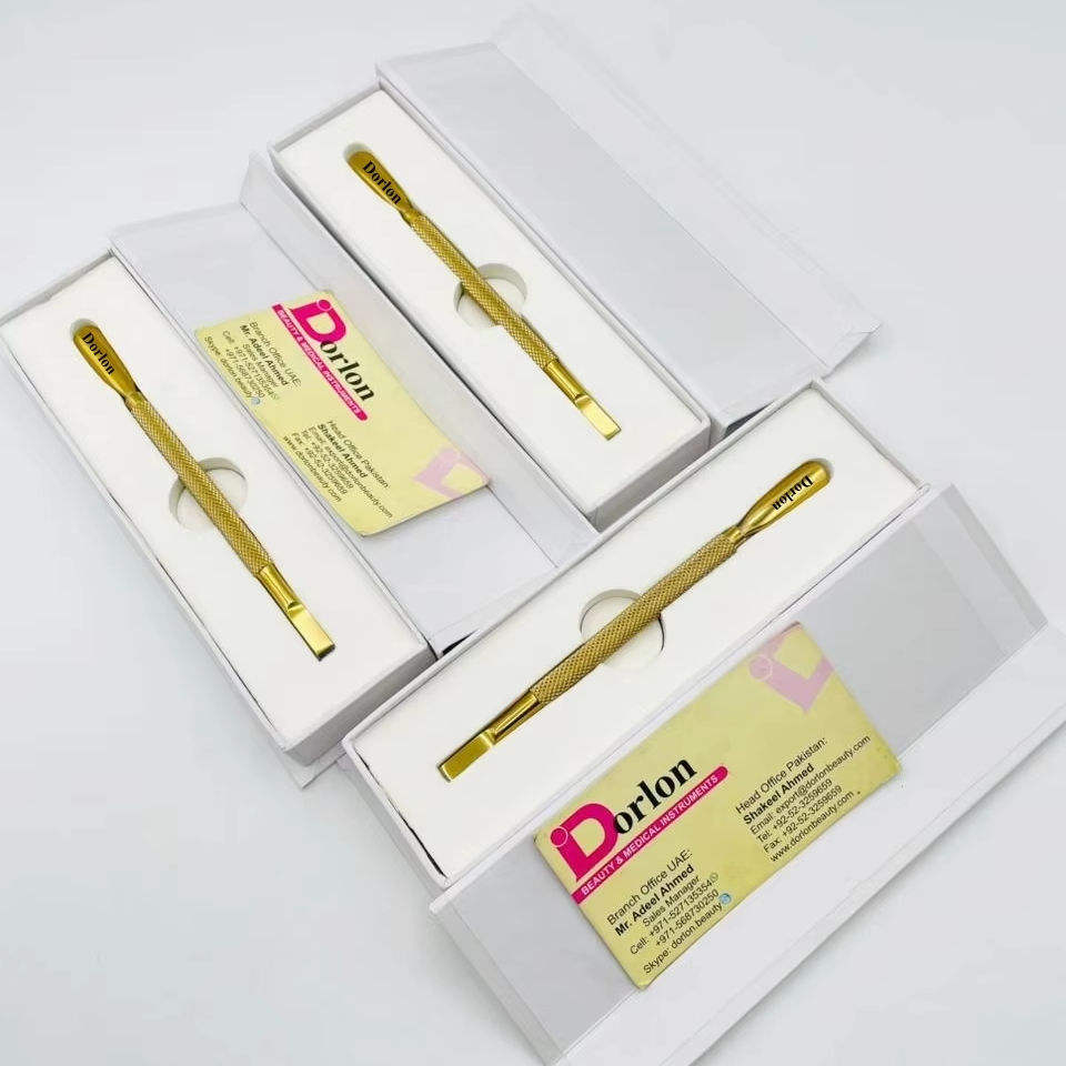 Durable Gold Plasma Manicure Nail Pusher Double Use Nail Care Salon Tool Stainless Steel Nail Stick With Box Cuticle Pushers
