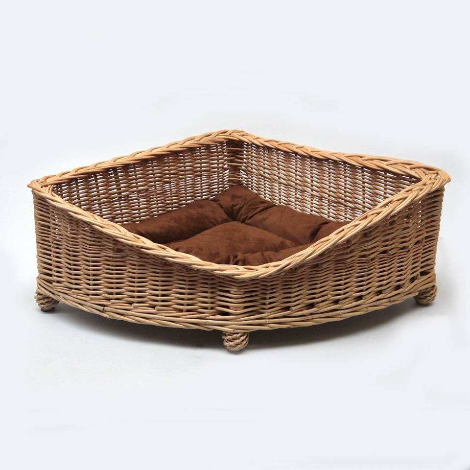 Durable Green Wicker Rattan Pet Dog Basket Natural Weaving Nest Accessories with Thick Mat Big Bed House Accessory