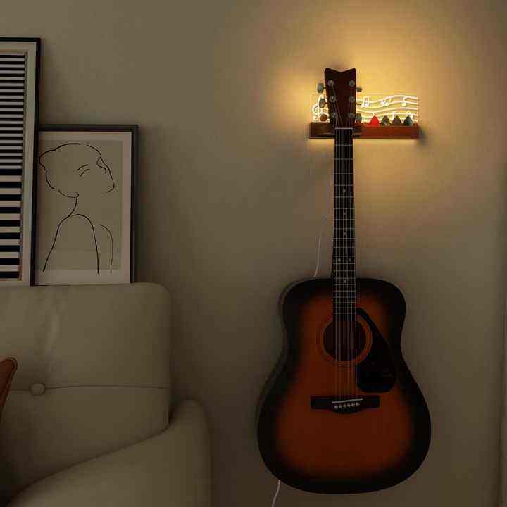 Product Name:Guitar Wall Holder with Pick Storage Carved Wood and Acrylic Hook