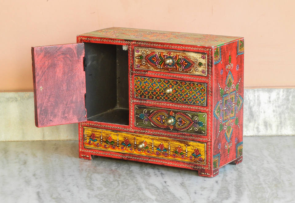 Durable Hand-Painted Indian-Style Wooden Trinket Box Bohemian Jewelry Organizer Storage Drawer for Wardrobe Living Room Home