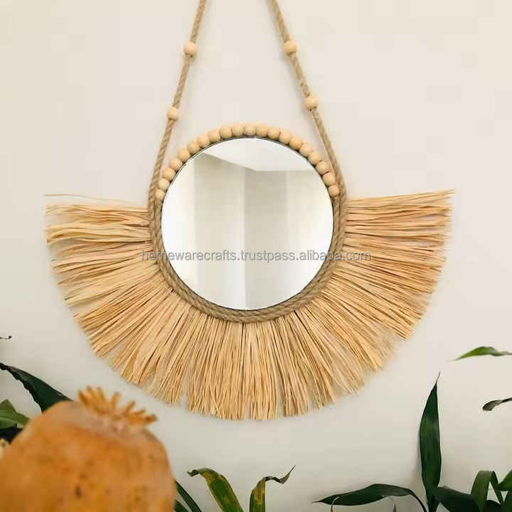 Durable Handmade Macrame Mirror Wall Hanging Natural Cotton Decorative Mirror for Bedroom Wholesale Supplier Vietnam