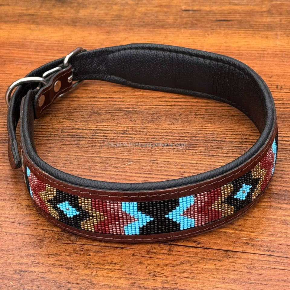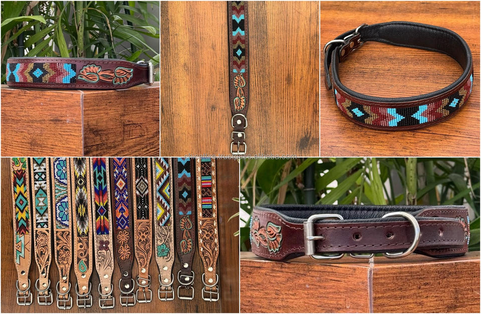 Product name:Hand Tooled Leather Beaded Dog Collar