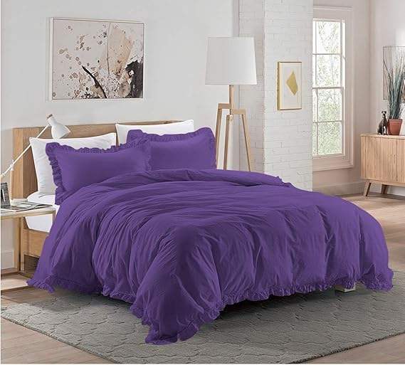 High Quality 3-Piece Solid Egyptian Cotton Duvet Set 300TC Luxury Classic Button Closure Corner Ties Ruffle Frills Machine