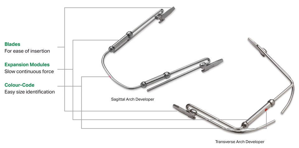 Material: Premium Stainless Steel Type: Transverse & Sagittal Arch Developers (Pair) Surface Finish: Polished / Satin Sterilization: Autoclavable Brand: EXOTIC Tools Packaging: Individual Poly Bags / Custom Sets Available