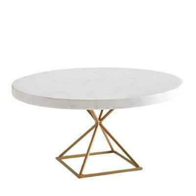 Durable Mid Century Modern White Marble Top Cake Stand with Gold Metal Base Customized for Birthday and Celebration Decor