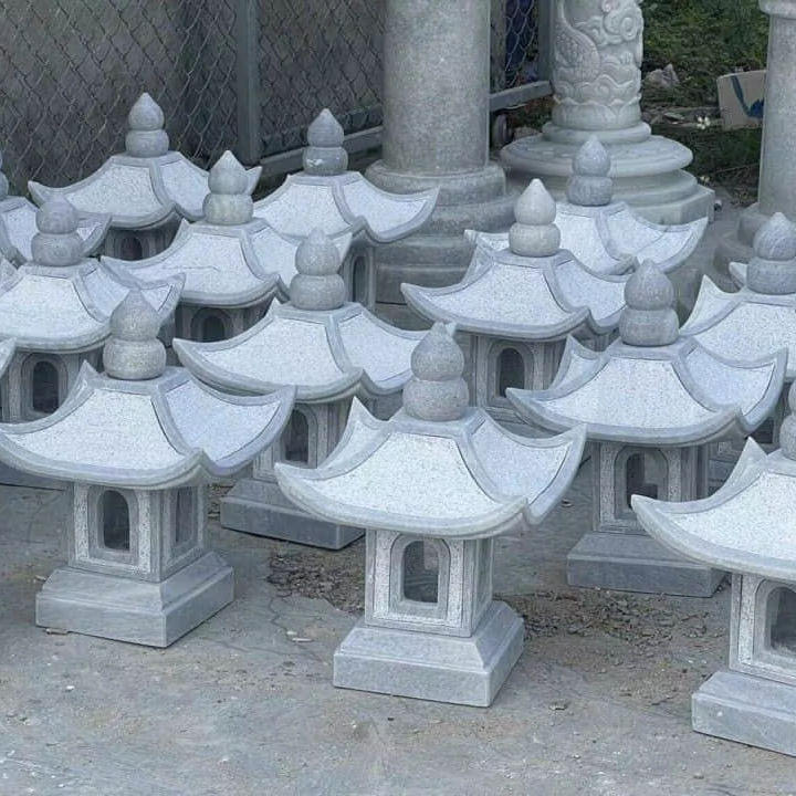 Durable Modern Carved Outdoor Granite Lantern for Garden Decor | Japanese Zen Landscape Stone Lighting for Hotel & Villa
