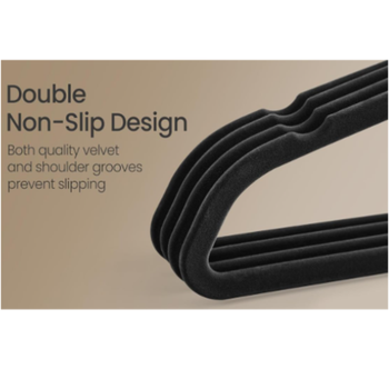 Durable Modern Velvet Technics Hangers Grooved Design Wide Shoulder PET Nylon Iron Swivel Hook 0.2 Inch Thickness 10PK Packaging