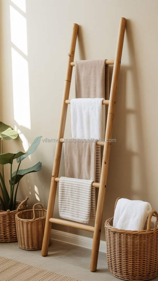 Durable Natural Bamboo Ladder for Home Organization Kitchen Clothing Storage Multifunction Eco-Friendly Decorative Display Rack