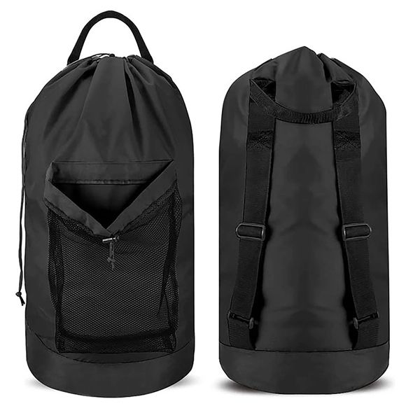 Durable Nylon Backpack Laundry Hamper Polyester Waterproof Shoulder Straps Mesh Pocket Drawstring Closure for College Travel