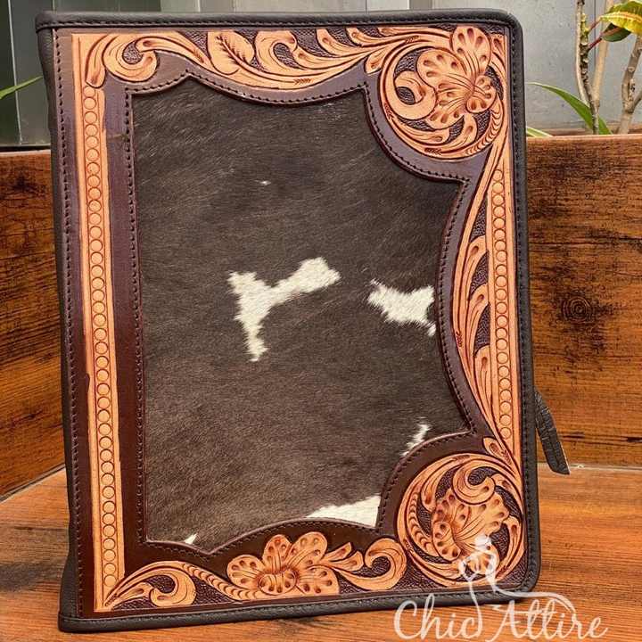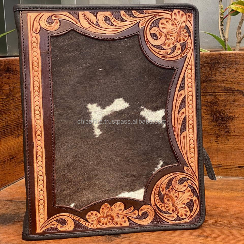 Hand Tooled Cowhide Leather Portfolio BinderProduct name