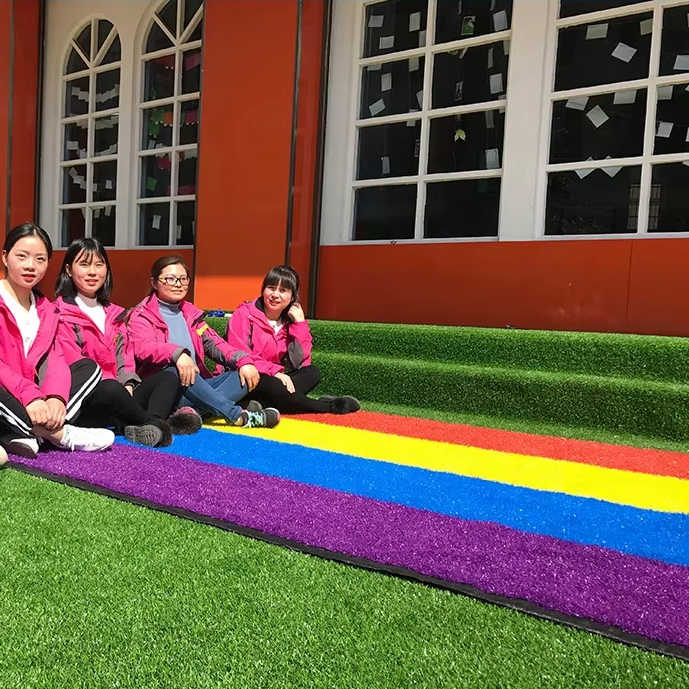 Durable Plastic Rainbow Synthetic Turf Colorful PE Artificial Grass Carpet Waterproof Fireproof Outdoor Playgrounds Schools