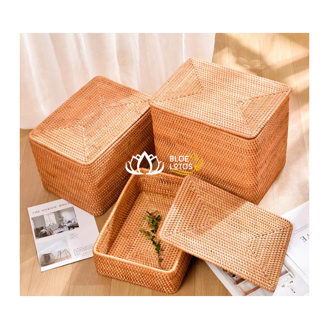 Durable Rattan Basket Handwoven Tropical Craft Item From Vietnam Suitable For Wholesale Distribution And Online Marketplace