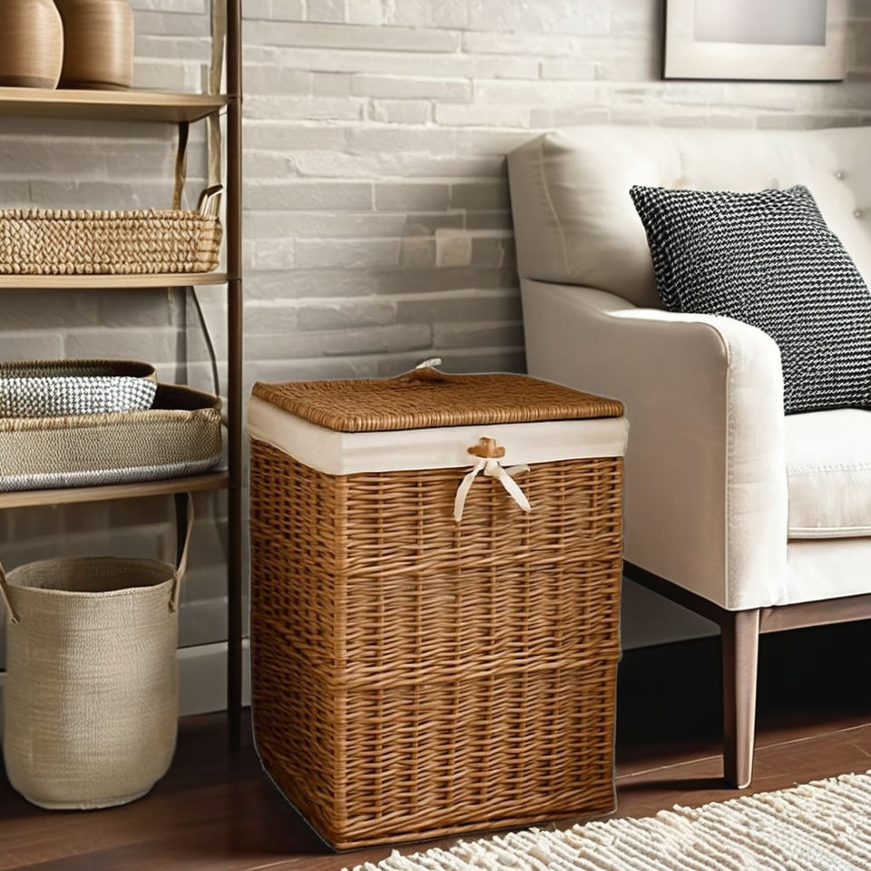 11\" Multipurpose Wicker Rattan Basket with Lid Stackable Home Storage Organizer for Kitchen Home Gift Organizing Boxed