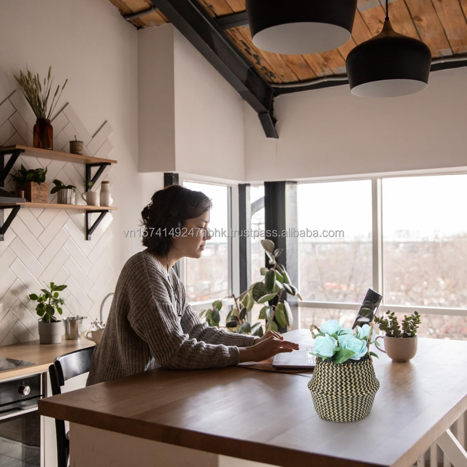 Durable Seagrass Belly Basket For Plants With Handles Foldable Organic Storage Handmade Boho Decor For Bathroom Or Home Use