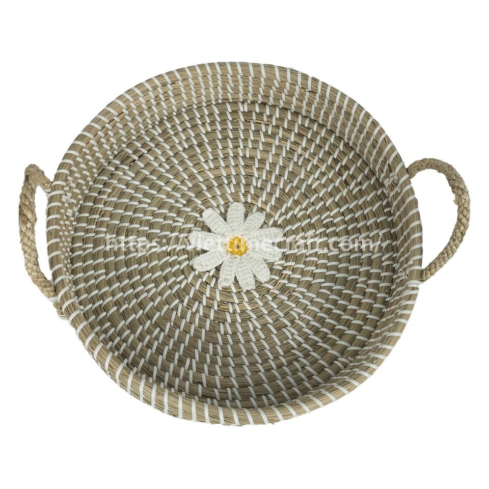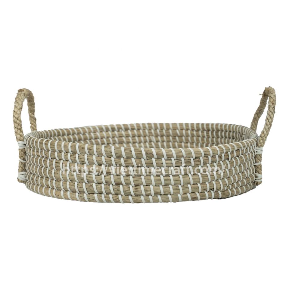 Durable Seagrass Woven Serving Tray with Plastic Reinforcement, Rustic Decorative Basket, Handwoven Decorative Basket