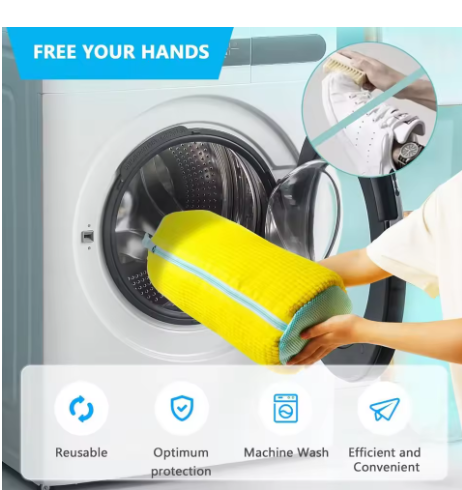 Durable Shoe Washing Machine Bag for All Shoe Types-Yellow with Blue Zipper,Ideal for Sneakers and Casual Shoes Wash Bag