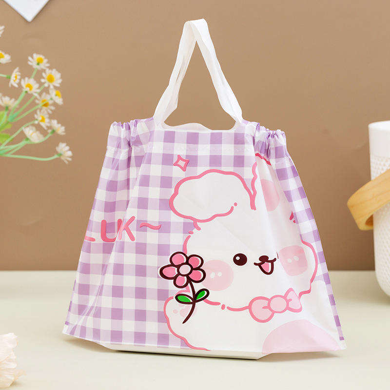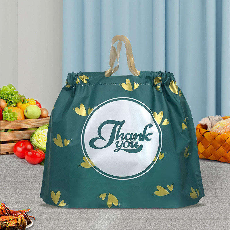 Durable Shopping Bag Drawstring Plastic Food Takeaway Custom Fashion 35*25cm Printing Bread Packaging HDPE Recyclable Carton