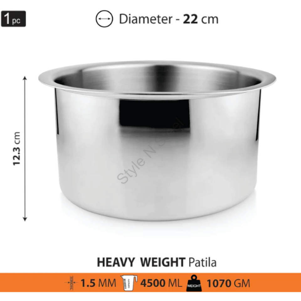 Durable Stainless Steel Heavy Weight Patila Cooking Pot Stylish CLASSIC Design With Mirror Finish