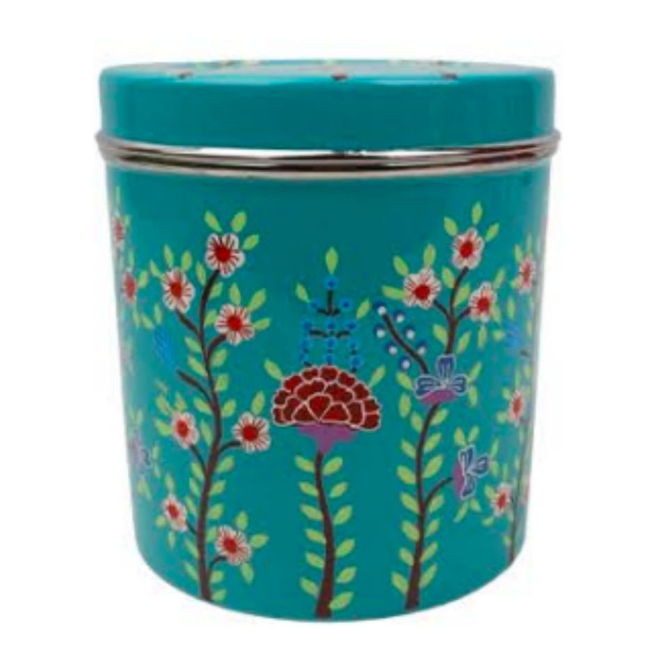 Durable Stainless Steel Storage Box with Vibrant Floral Design Enamel Coated Food Safe Container Lid Decorative Printed Bin
