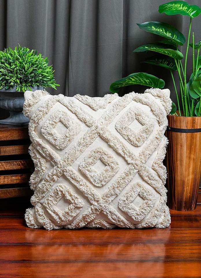 Durable Super Soft Family Tufted Throw Pillow Cover Custom Washed Solid Color Embroidered Dot Hand Woven Geometric Leaves