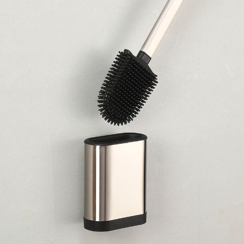 Durable TPR Plastic Toilet Brush Holder Set with Stainless Steel Wall Mount Flexible Bristles for Bathroom Cleaning