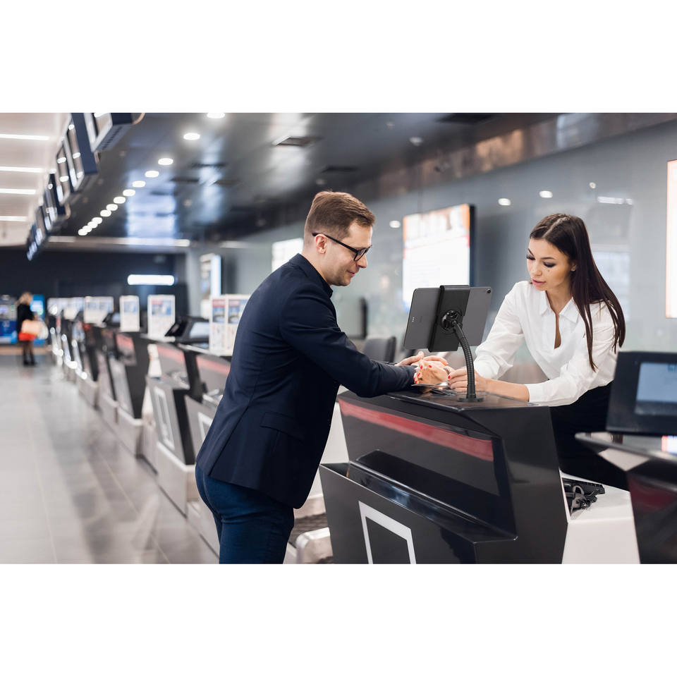 Rotating Stainless Steel Black iPad Floor Stand Angle Adjustable Tablet Holder Height Adjustable Rack Easy One-Hand Mobile Stand