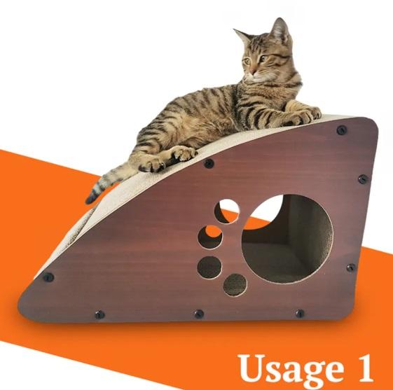 Durable Triangle Shape Cat Scratcher with Catnip Corrugated Cardboard Cat Tree & Scratcher
