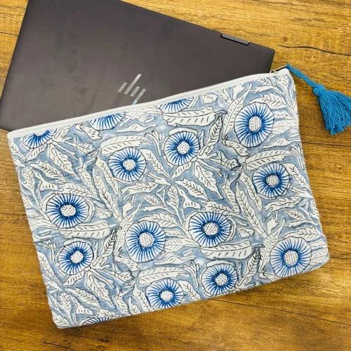 Durable Vintage Modern Hand-Block Printed Cotton Quilted Laptop Sleeves Bag Waterproof Business Daily Use Simple Office