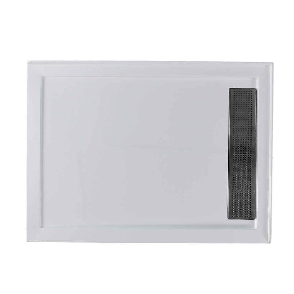Durable White Acrylic Alcove Waterproof Shower Floor Tray With Stainless Steel Drain Cover