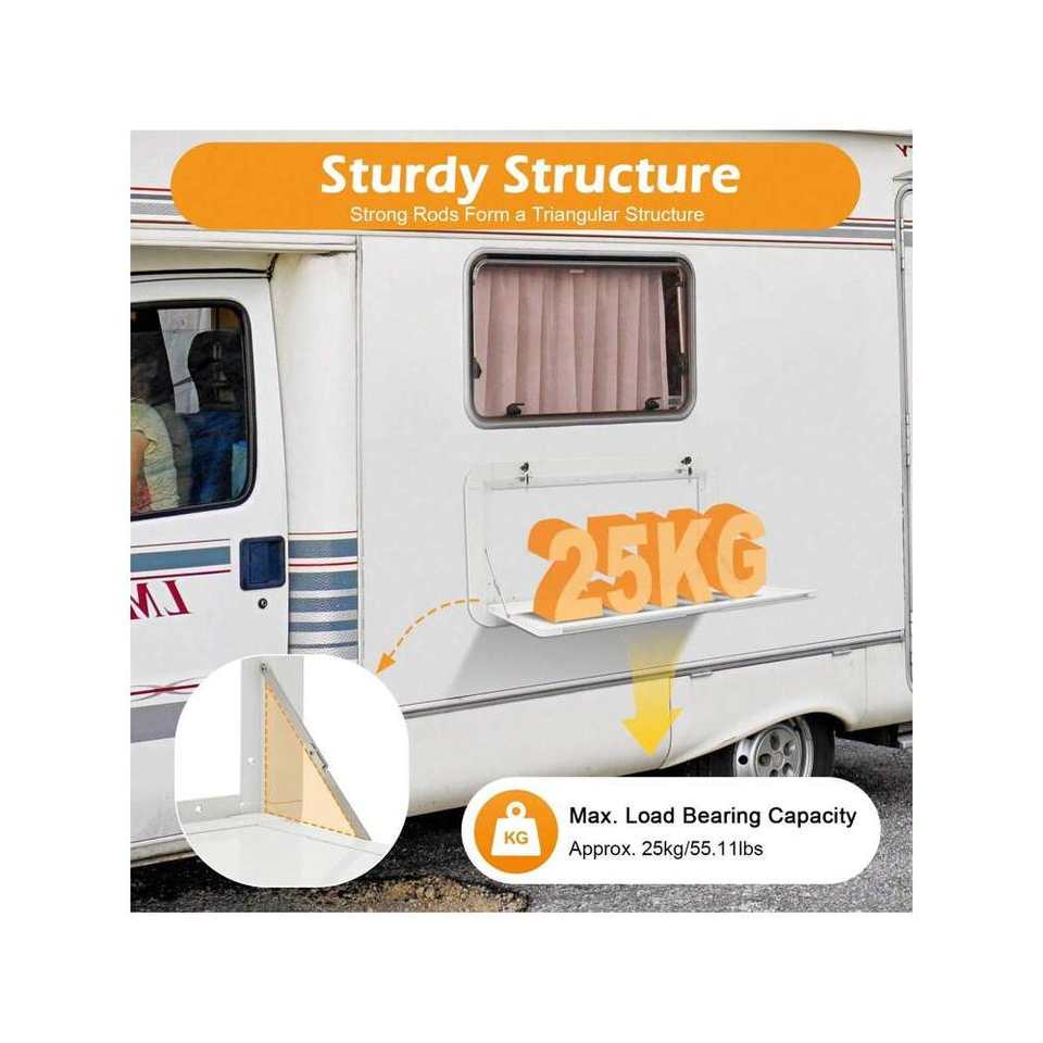 Durable White Aluminum Alloy RV Caravan Folding Table Wall Mount Kitchen Dining Table for Camping Picnics Fold-Able Hanging