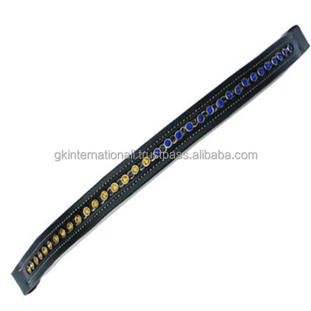 Durable White Stitching and Soft Padding Crystals bling inlaid Empty Channel Black Premium Leather Horse brow band