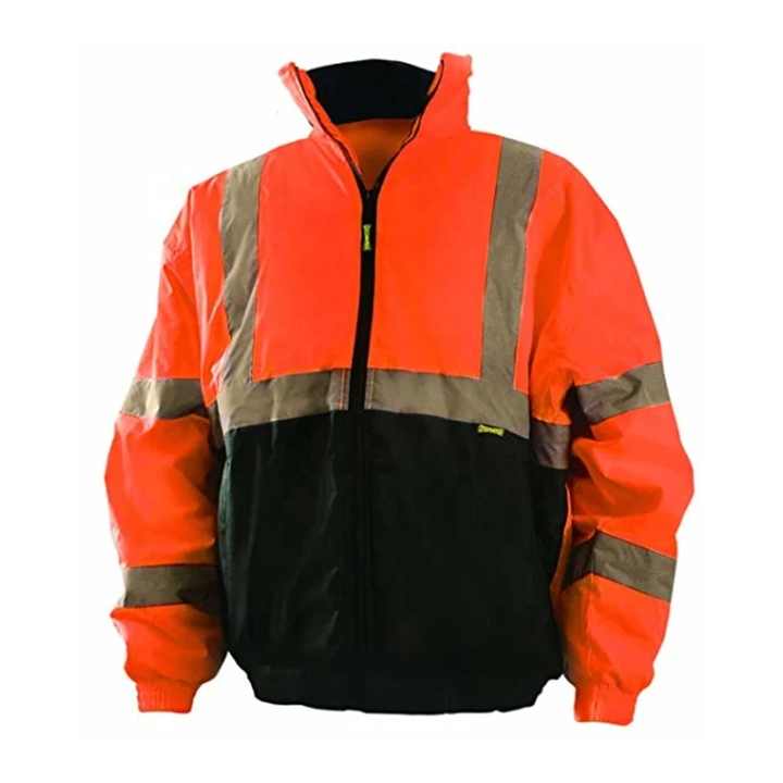 Durable Windproof Outerwear Work Jacket & Pants Fluorescent Orange Black Double Layer Safety Jacket Hi Vis Professional Apparel