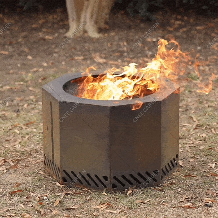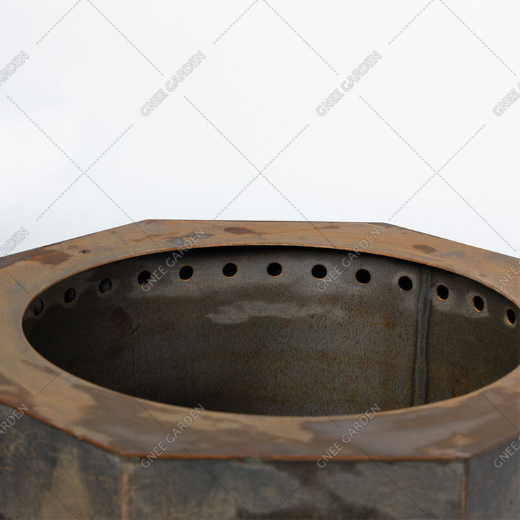 Durable Wood Burning Outdoor Fireplace Corten Steel Octagonal Fire Bowl No Assembly Secondary Combustion for Home Backyard