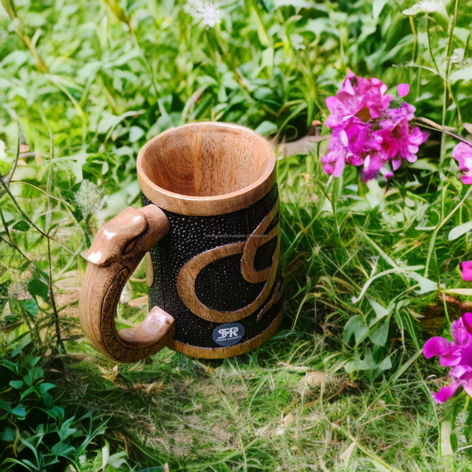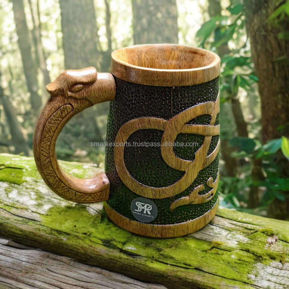Durable Wooden Beer Stein Handcrafted Carved Dragon Handle Eco-Friendly Dishwasher Safe for Beer Lovers Gift and Bar Collection
